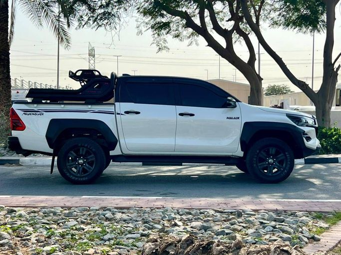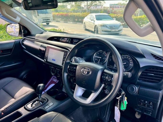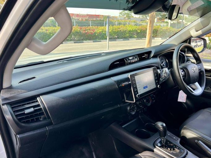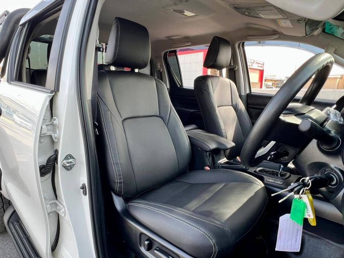 This 2023 Toyota Hilux VIII double-cab pickup arrives in white and is powered by a 2.8-liter diesel producing 177 horsepower, paired with an automatic transmission and all-wheel drive. With a single previous owner and about 31,100 kilometers on the clock, it presents a well-kept example that balances everyday comfort with genuine capability for loading, towing, and light off-road use. The AWD setup and diesel torque offer confident performance across conditions, while the automatic gearbox delivers smooth city driving. Inside, the double cab provides practical space for fou
