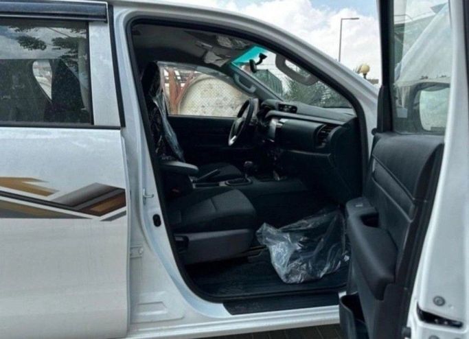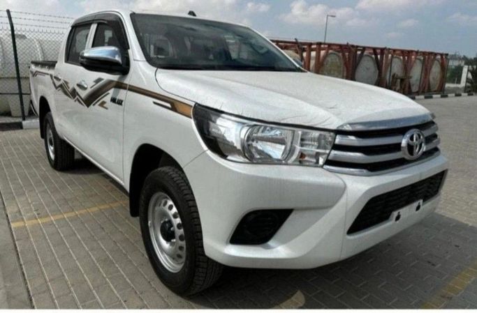 The 2024 Toyota Hilux, Generation VIII, in white, is a new double-cab pickup with all-wheel drive and an automatic transmission. Powered by a 2.7-litre petrol engine delivering 164 hp, it pairs robust performance with GCC-spec tuning for regional conditions. This setup supports versatile day-to-day use and confident handling across a range of terrains, while the AWD system adds traction when needed. Inside, the cabin prioritizes practicality and comfort with space for passengers and a straightforward, durable layout that suits workday routines and weekend trips. Built for r