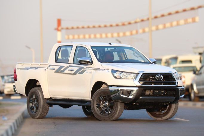 Buy the all new Toyota Hilux 2.7L Double Cab 4WD 2025 white inside maroon. It comes with 2.7L 4-cylinder petrol engine, 6-speed automatic transmission. ENGINE & MECHANICAL FEATURES – 2.7 Liter 4 Cylinder 16 Valves, VVT-I – 122 KW @ 5,200 RPM – 245 NM @ 4,000 RPM – Euro 4 – 6 Speed A/T – 4WD Lever Knob and Switch (2WD-4WD) DIMENSIONS – Length = 5,325 mm – Width = 1,855 mm – Height = 1,815 mm – Curb Weight: 1,945 kg – Gross Vehicle Weight: 2,800 kg EXTERIOR FEATURES – Alloy Wheel Spare Tire – 17 inch All Terrain Aluminum Wheels (65/265R17) – J-Deck Tail Gate – 4-Bulb Halo