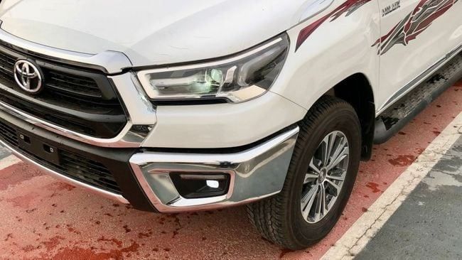 Toyota Hilux Toyota Hilux 2.7L Petrol Automatic D/C 2025YM New 2025 Toyota Hilux VIII double-cab pickup in white blends practicality with rugged capability. The 2.7-liter petrol engine delivers 164 horsepower and is paired with an automatic transmission and all-wheel drive, delivering confident performance across on-road use and light off-road conditions. The double-cab layout offers seating for five and a flexible cargo area, while GCC specifications align with regional standards and climate needs. Inside, the cabin prioritizes durability and easy operation, with a straigh