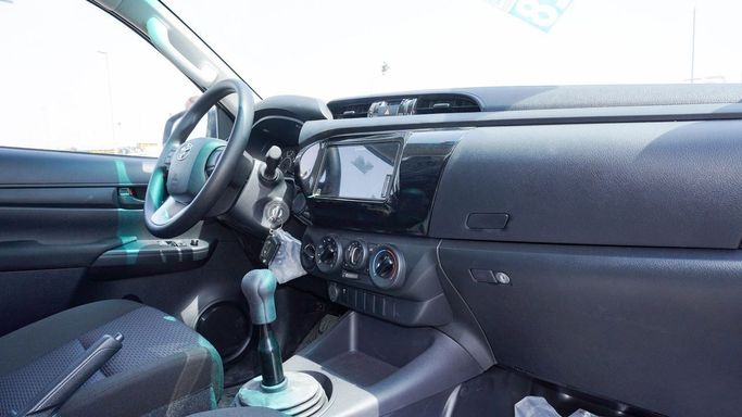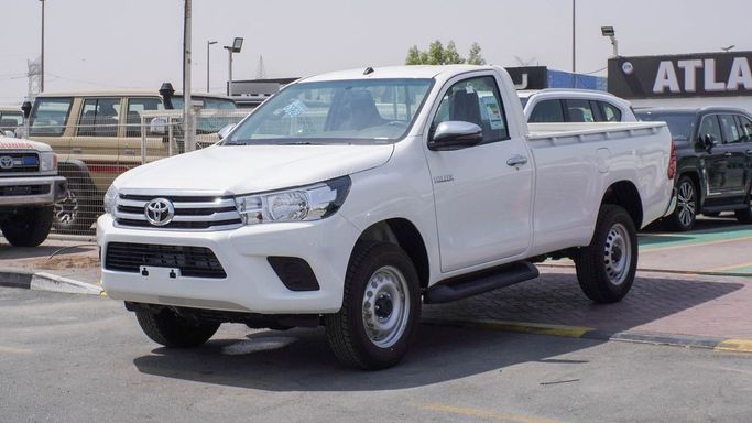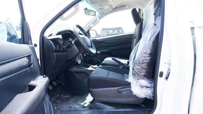 New 2025 Toyota Hilux, generation VIII, in white, arrives as a single-cab pickup with all-wheel drive and a 2.4-liter diesel engine producing 150 horsepower, mated to a manual transmission. This GCC-spec model emphasizes practical utility and rugged capability, designed to handle daily work tasks and varied terrain with dependable durability. The 2.4-liter diesel offers solid torque for loading tasks, while the manual gearbox provides direct, uncomplicated control. AWD improves traction on uneven surfaces and in challenging conditions, complementing a straightforward cabin