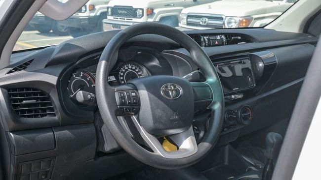 New 2023 Toyota Hilux DLX. 2.4L Diesel 4WD for sale in Dubai. Available from Africa Auto FZE. Manual transmission, 4 cylinder engine, 17″ wheels and black interior. Never driven, GCC specs.