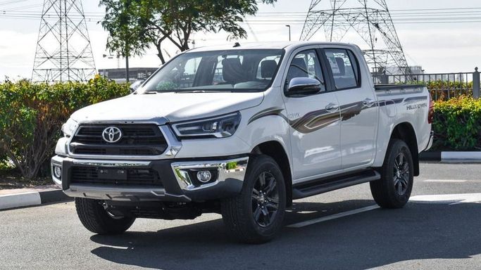 New 2024 Toyota Hilux SR5 2.7 Petrol A/T 4WD for sale in Dubai. Available from Najem Motors FZE. Automatic transmission, 4 cylinder engine, 17″ wheels and burgundy interior. Never driven, GCC specs.