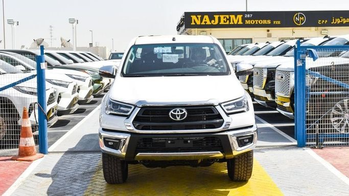 New 2023 Toyota Hilux S-GLX SR5 2.7 Petrol A/T 4WD for sale in Dubai. Available from Najem Motors FZE. Automatic transmission, 4 cylinder engine, 17″ wheels and burgundy interior. Never driven, GCC specs.