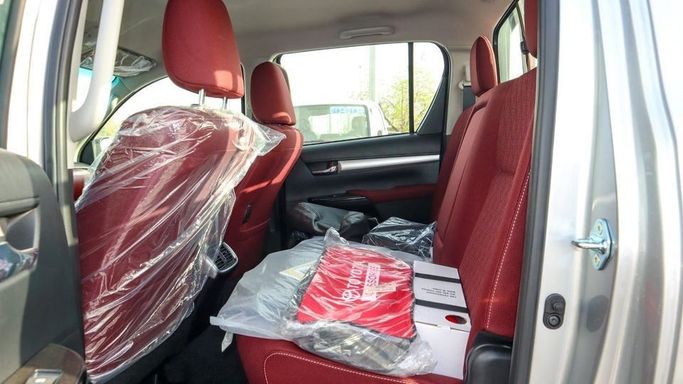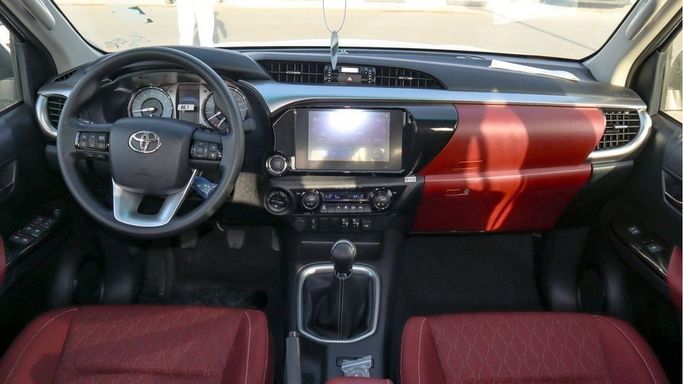 New 2024 Toyota Hilux SR5 for sale in Dubai. Available from Najem Motors FZE. Manual transmission, 4 cylinder engine, 17″ wheels and red interior. Never driven, GCC specs.
