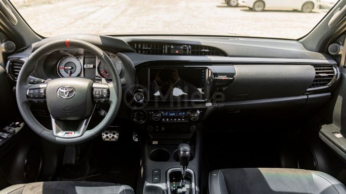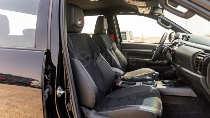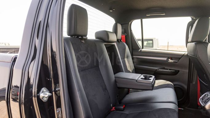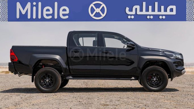 Introducing the all-new 2024 Toyota Hilux, a remarkable embodiment of strength and reliability that defines the eighth generation, now with a striking facelift. Designed as a double cab pickup, the Hilux seamlessly blends practicality with a bold, modern aesthetic, making it perfect for both work and leisure. Its sleek black exterior not only exudes sophistication but also offers an enduring appeal that stands out on any terrain. Under the hood, the Hilux boasts a robust 2.8-liter diesel engine capable of delivering an impressive 204 horsepower, paired with a smooth automa