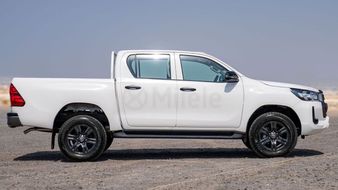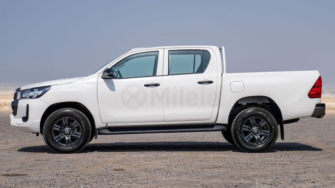Introducing the 2024 Toyota Hilux, a remarkable blend of ruggedness and sophistication in a double cab pickup. This eighth-generation facelift impresses with its sleek white finish, designed to turn heads whether you're on city streets or off the beaten path. Known for its exceptional reliability and robust performance, the Hilux continues to embody the core values of the Toyota brand: durability, quality, and innovation. Under the hood, this model is powered by a 2.7-liter gasoline engine that delivers a spirited 166 horsepower, ensuring you have the performance you need