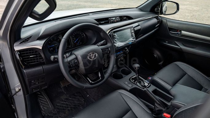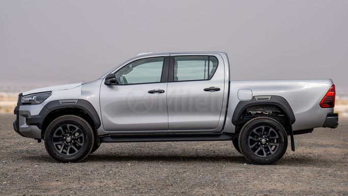 Experience the rugged elegance of the 2024 Toyota Hilux, a pinnacle of strength and adaptability in the pickup segment. Standing as a proud member of the eighth generation, this facelift model combines Toyota's renowned reliability with cutting-edge innovations. With its striking silver exterior, the Hilux commands attention, perfectly suited for both urban adventures and off-road escapades. Equipped with a powerful 204 horsepower diesel engine, the Hilux offers an impressive balance of efficiency and performance. The advanced all-wheel drive (AWD) system ensures superior