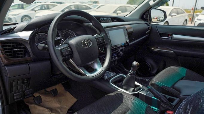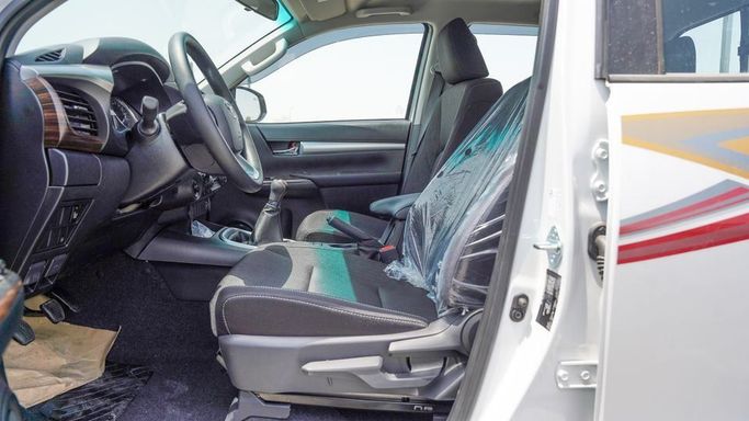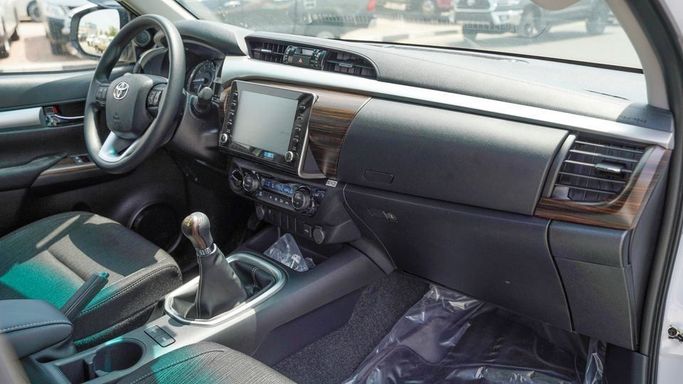 Brand new Toyota Hilux for sale in Dubai. White 2025 model, available at Najem Motors FZE. This car has manual transmission, 4 cylinder engine, 17″ wheels and black interior. GCC specs.