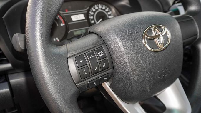 Brand new Toyota Hilux 2.4L Diesel Double Cabin 4WD A/T for sale in Dubai. White 2025 model, available at Najem Motors FZE. This car has automatic transmission, 4 cylinder engine, 17″ wheels and black interior. GCC specs.