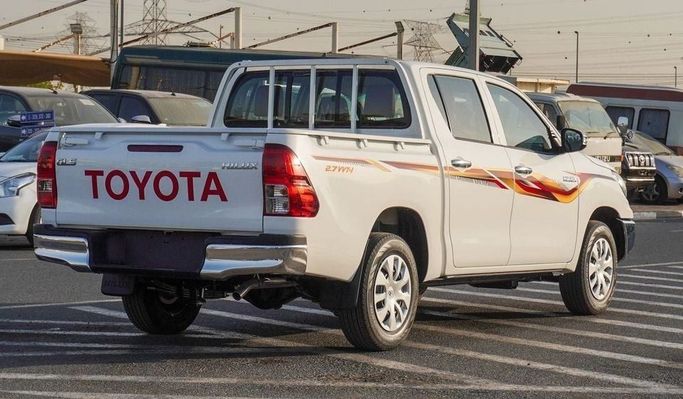 New Toyota Hilux GLS 2.7L 4WD A/T for sale from Najem Motors FZE in Dubai. White 2025 model. The car has automatic gearbox, 4 cylinder engine, 17″ wheels and burgundy interior. GCC specs.