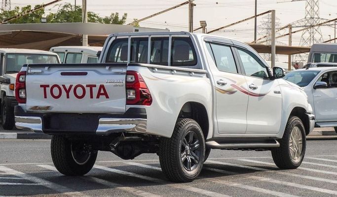 New 2025 Toyota Hilux SR5 2.7L 4WD A/T for sale in Dubai. Available from Najem Motors FZE. Automatic transmission, 4 cylinder engine, 17″ wheels and red interior. Never driven, GCC specs.
