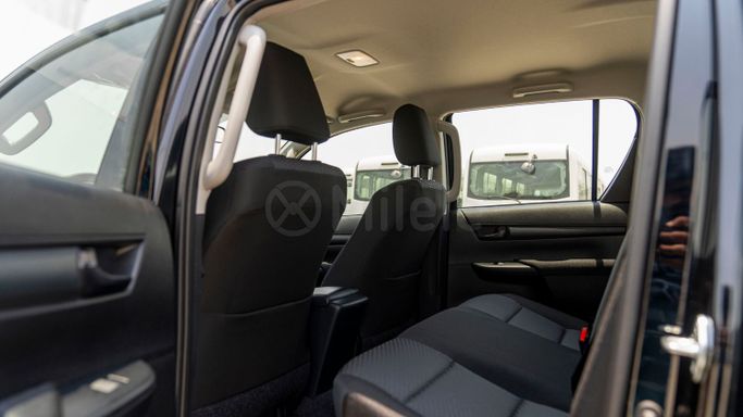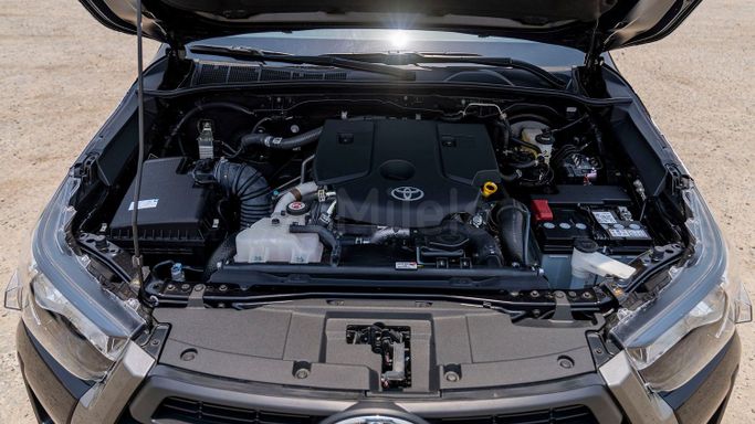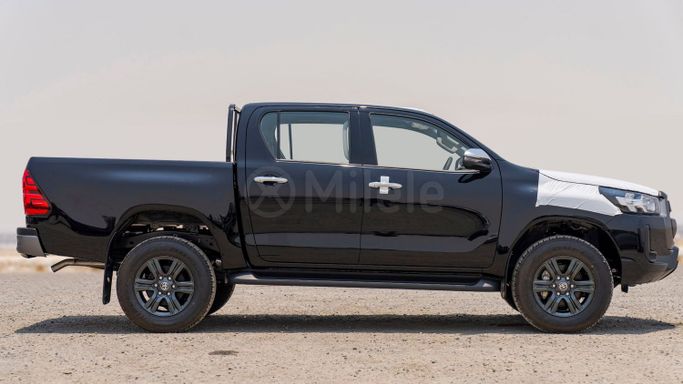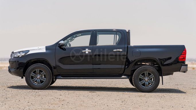 Introducing the remarkable 2025 Toyota Hilux, a powerful embodiment of durability and performance that stands out in the crowd. This new model, featuring the VIII Facelift generation, exemplifies Toyota’s commitment to producing reliable vehicles known for their ruggedness and off-road capabilities. Adorned in a sleek black exterior, the Hilux presents an imposing presence, making it not just a utility vehicle, but a statement on wheels. With its robust double cab design, this pickup comfortably accommodates both passengers and cargo, providing versatility that caters to v