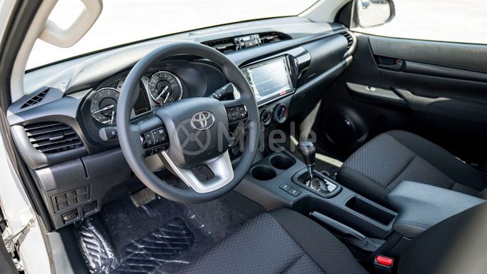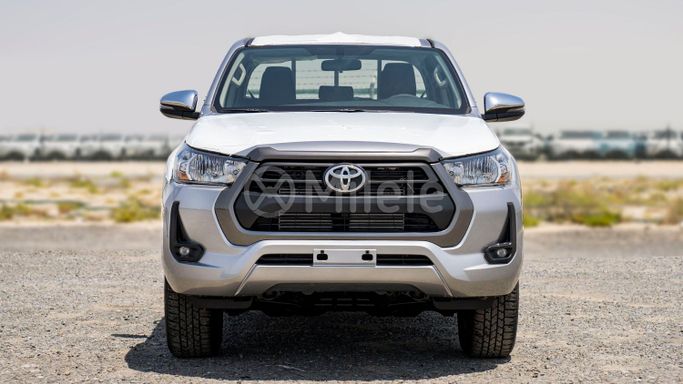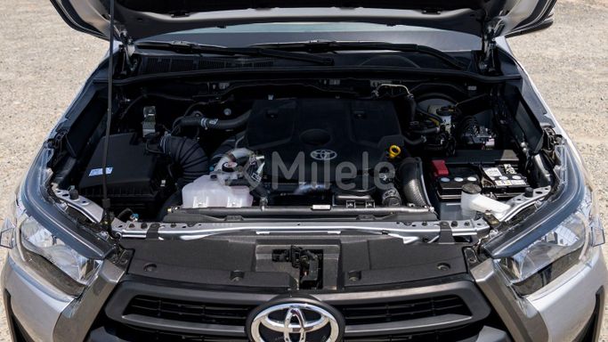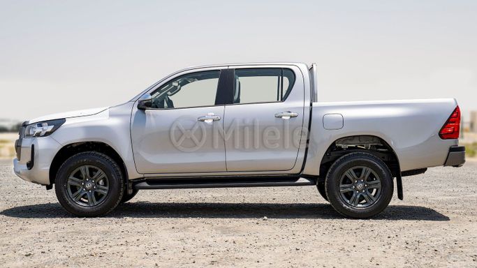 Introducing the 2025 Toyota Hilux VIII Facelift, a new benchmark in rugged versatility and enduring performance. This stylish double cab pickup is finished in a sleek silver hue, exuding confidence and sophistication. Designed for both work and play, the Hilux comes equipped with a robust 2.4-liter diesel engine, delivering an impressive 150 horsepower. With its automatic transmission and all-wheel drive capability, navigating through urban streets or off-road trails has never been smoother or more exhilarating. The Hilux is not just about power; it combines a spacious and