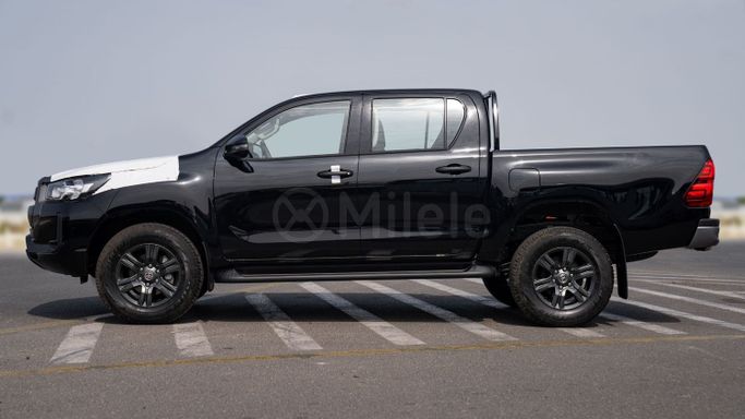 Introducing the exceptional 2025 Toyota Hilux, the epitome of strength and versatility in the pickup segment. This new eighth-generation facelift model, presented in an eye-catching black finish, is a perfect blend of robust functionality and modern style. With a reliable 2.7L gasoline engine producing an impressive 166 horsepower, this all-wheel drive (AWD) pickup is engineered to tackle a variety of terrains while ensuring superior driving dynamics. The Hilux is designed with a dual cab configuration, providing ample space for both passengers and cargo, making it an idea