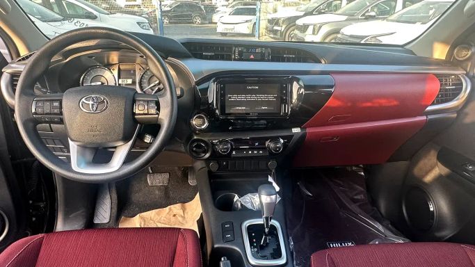 New 2025 Toyota Hilux VIII Facelift in black offers a versatile double-cab pickup with AWD and an automatic 2.7-litre petrol engine delivering 166 horsepower. This GCC-spec model balances everyday practicality with dependable off-road capability, featuring refreshed styling that sharpens the exterior while keeping the durable, work-ready character you expect from a Hilux. The 2.7 engine provides steady, confident performance for daily driving and highway overtakes, and the all-wheel-drive system helps maintain traction across varied surfaces. The double-cab layout pairs a r