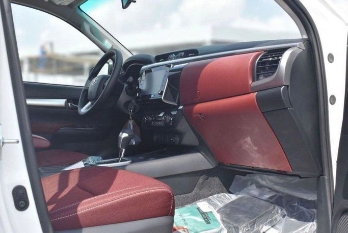 Meet the 2025 Toyota Hilux VIII Facelift, a new double-cab pickup finished in white that blends practical utility with modern design. Under the hood is a 2.7-liter petrol engine producing 166 horsepower, driving through an automatic transmission for smooth operation, while all-wheel drive provides confident grip in a range of conditions. The GCC-spec version is built to meet regional requirements, supporting everyday work duties and weekend adventures with a spacious cabin for four and a versatile cargo bed. The VIII Facelift brings refined styling cues and a more contempor