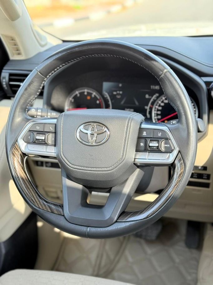 TOYOTA LAND CRUISER VX. R TWIN TURBO | GCC SPECS | YEAR: 2022 | KMS: 142,000 | FULL-SERVICE HISTORY FROM AL FUTTAIM • Engine: 3.5L Twin turbo V6 • Engine cc: 3,400 cc • Drive Type: Full-Time 4×4 (AWD) • Seating Capacity: 7 Persons • Transmission: 10-Speed Automatic • Alloy wheel: 20 inches • Top Speed: 210 km/h (estimated) • ABS with EBD (Anti-Lock Braking System) • Vehicle Stability Control (VSC) • Active Traction Control (A-TRC) • Hill-start Assist Control (HAC) • Multi-Airbag System • Premium Leather Seats • Multi-Zone Climate Control • Power Adjustable Seats • Premium
