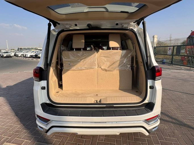 The 2023 Toyota Land Cruiser 300 Series delivers a commanding presence with a clean white exterior and a refined SUV silhouette that blends off-road capability with modern comfort. Under the hood sits a twin-turbocharged 3.4-liter V6 that outputs 415 horsepower, paired with a 10-speed automatic transmission and all-wheel drive to provide confident power delivery across varied terrains while maintaining a smooth on-road feel. Inside, the cabin emphasizes durability and quality materials, offering thoughtful space for five doors of practicality and a well-appointed experience
