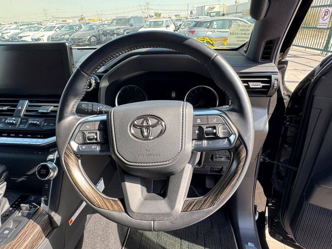 This 2023 Toyota Land Cruiser 300 Series sits in a sleek black finish and comes in a practical 5-door SUV layout with automatic transmission and AWD for confident handling in diverse conditions. Under the hood lies a 3.3-liter diesel V6 delivering 309 hp, paired with a responsive 10-speed-like autobox that balances strong performance with smooth cruising. With only one previous owner and a low mileage of 3,073 miles, the vehicle presents a nearly fresh feel and a well-preserved interior and exterior. The Land Cruiser blends rugged capability with refined comfort, offering g