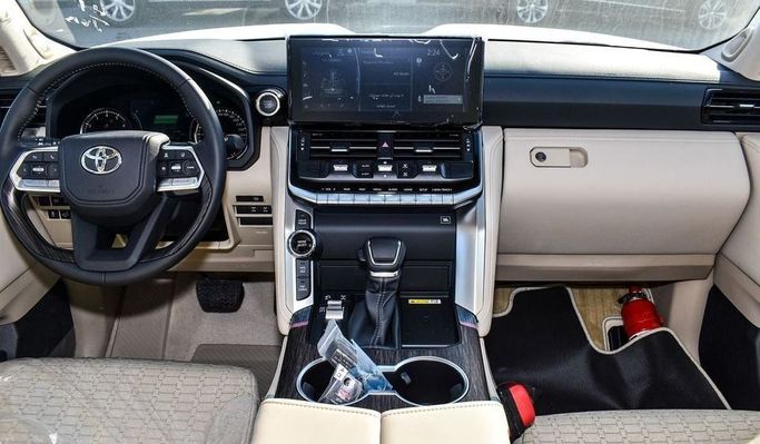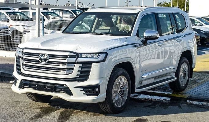 New Toyota Land Cruiser VX.R for sale from Najem Motors FZE in Dubai. White 2024 model. The car has automatic gearbox, 6 cylinder engine, 20″ wheels and beige interior. GCC specs.