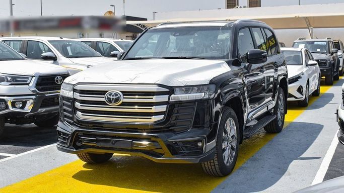 New Toyota Land Cruiser GXR 4.0L V6 for sale from Najem Motors FZE in Dubai. Black 2024 model. The car has automatic gearbox, 6 cylinder engine, 20″ wheels and red interior. GCC specs.