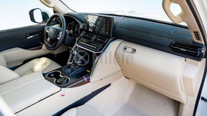 Introducing the stunning 2024 Toyota Land Cruiser 300 Series, an embodiment of power, luxury, and versatility that is ready to conquer any terrain while providing unparalleled comfort. This esteemed SUV stands tall with its striking white exterior, which is sure to turn heads as you navigate through cityscapes or escape into nature's embrace. The Land Cruiser is not just a vehicle; it’s a testament to Toyota's commitment to excellence, with over 60 years of heritage that instills confidence in every drive. Under the hood, the Land Cruiser is equipped with a robust 3.3-lite