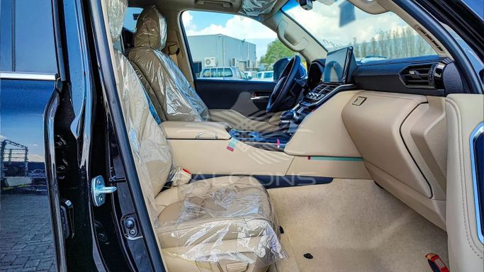 The 2024 Toyota Land Cruiser 300 Series is a remarkable blend of luxury, power, and off-road capability that commands attention wherever it goes. This new SUV boasts a robust 415 horsepower from its advanced 3.4L gasoline engine, seamlessly paired with an automatic transmission that ensures smooth and responsive performance on any terrain. Its all-wheel drive system provides confidence and control, making it equally adept at navigating city streets or venturing off the beaten path. Dressed in a sleek black exterior, the Land Cruiser showcases a bold and sophisticated desig