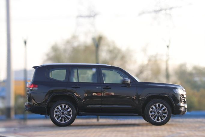 Toyota Land Cruiser GXR 2024 Engine & Mechanical Features Engine: 4.0L V6 Power Output: 271 HP Torque: 385 NM Transmission: 6 Speed Automatic Differential: Central & Rear Differential Lock Dimensions Length: 4,950 mm Width: 1,980 mm Height: 1,950 mm Wheelbase: 2,850 mm Exterior Features Wheels: 20-inch Alloy Wheels (55/265/R20) Trunk: Rear Power Trunk Roof: Chrome Roof Racks Headlamps: LED Headlamps Fog Lamps: LED Fog Lamps Mirrors: Retractable & Color Door Side Mirrors Daytime Running Lights: LED Wipers: Intermittent Windshield Wiper, Rear Window Wiper Side Steps: Yes Mud