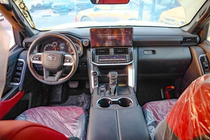 2024 Model Toyota Land Cruiser VXR Twin Turbo (VJA300) - Vehicle Summary • Model: Land Cruiser (300 Series) • Trim: VXR (Flagship Luxury Grade) • Model Code: VJA300 • Engine: 3.5L V6 Twin-Turbo Petrol (V35A-FTS) • Transmission: 10-Speed Automatic (Direct Shift-10AT) • Drivetrain: Full-Time 4WD with Torsen® LSD & E-KDSS • Exterior Color: Onyx Black / Midnight Black Metallic • Interior Color: Typically Black, Saddle Tan, or Brick. Detailed Full Option Specification List 1. Powertrain & Performance • Engine: 3.5L V6 Twin-Turbocharged Petrol (V35A-FTS)