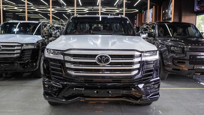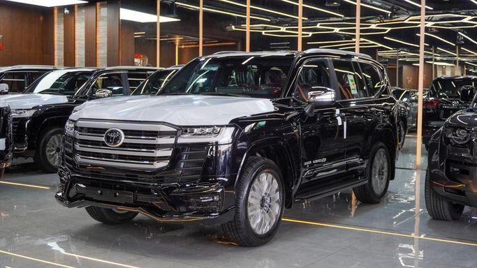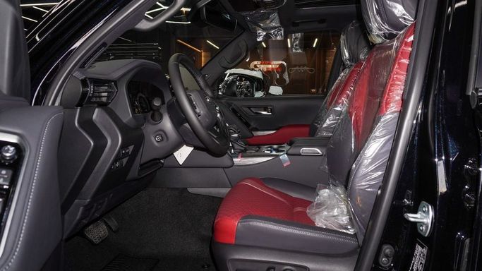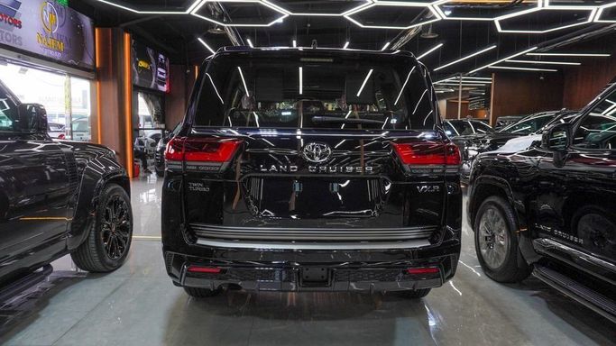 New Toyota Land Cruiser VXR 3.5 L Twin Turbo V6 for sale from Najem Motors FZE in Dubai. Black 2025 model. The car has automatic gearbox, 8 cylinder engine, 20″ wheels and red interior. GCC specs.