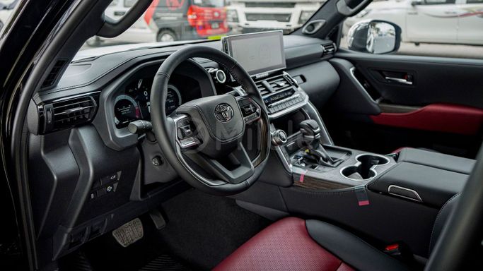 The 2025 Toyota Land Cruiser 300 Series is the epitome of luxury and robustness in the world of SUVs. This brand new model, finished in a stunning black exterior, combines exquisite design with unrivaled performance, making it the perfect choice for those who seek adventure without sacrificing comfort. The powerful gasoline engine generates an impressive 415 horsepower, ensuring that whether you're navigating city streets or venturing off the beaten path, you have the strength and reliability to tackle any terrain. As an all-wheel-drive vehicle, the Land Cruiser is enginee