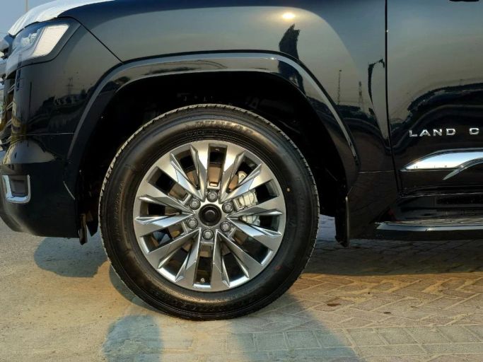 The 2025 Toyota Land Cruiser 300 Series arrives as a new five-door SUV finished in black and tailored to GCC specifications. Under the hood, a 4.0-liter petrol V6 delivers 275 horsepower, paired with an automatic transmission and all-wheel drive for confident performance on varied terrain and road surfaces. This generation blends robust off-road ability with everyday comfort, offering a roomy, well-appointed cabin, straightforward controls, and a calm highway ride. Its design communicates a purposeful, enduring presence, with practical touches that suit family trips and dai