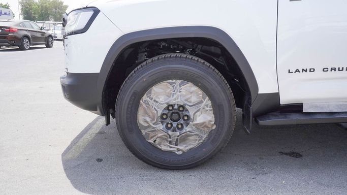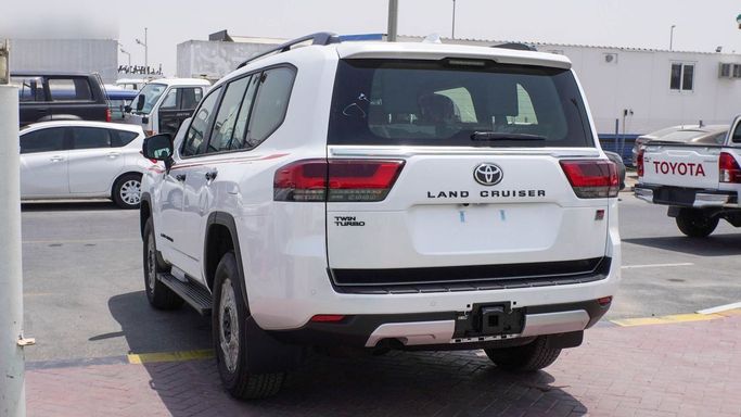 New 2025 Toyota Land Cruiser 300 Series, finished in white, pairs rugged capability with refined on-road comfort. Under the bonnet sits a 3.4-liter petrol engine delivering 415 horsepower, mated to an automatic transmission and all-wheel drive for confident performance in a range of conditions. The GCC-spec configuration ensures regional tuning and equipment suitable for hot climates and long trips, while the 5-door SUV body offers flexible seating and cargo space. Inside, the cabin emphasizes durability and usability, with a calm, well-appointed environment and technology