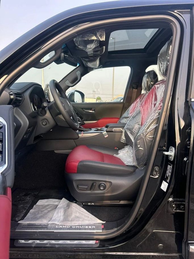The 2025 Toyota Land Cruiser 300 Series in black is a new, purpose-built SUV that blends rugged capability with refined comfort. Under the hood, a 3.4-liter turbocharged petrol engine delivers 415 horsepower, paired with a smooth automatic transmission for confident performance on highways and trails alike. With all-wheel drive and a thoughtfully tuned suspension, it maintains a balanced ride and strong traction across diverse terrains, while GCC-spec equipment supports climate control and regional convenience. Inside, the cabin emphasizes space, quietness, and high-quality