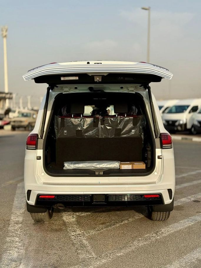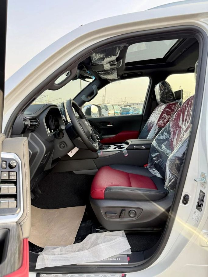 New 2025 Toyota Land Cruiser 300 Series, a five-door SUV finished in white, blends rugged capability with everyday comfort. It is powered by a 3.4-liter petrol engine delivering 415 hp, paired with an automatic transmission and all-wheel drive for steady performance in diverse conditions. The GCC-spec configuration aligns with regional requirements, supporting reliability in hot climates and challenging terrains, while the interior emphasizes space, quiet comfort and modern technology that keeps you connected. With its enduring design and proven off-road credibility, this L