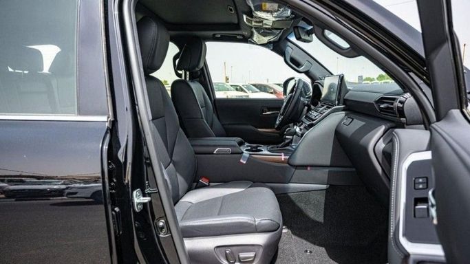 New 2025 Toyota Land Cruiser 300 Series, a 5-door SUV in black, offers a balanced mix of rugged capability and comfortable daily usability. Powered by a 3.4-liter petrol engine delivering 415 hp, paired with an automatic transmission and all-wheel drive, it handles diverse driving conditions with responsive performance and assured stability. The exterior presents the familiar, capable silhouette of the Land Cruiser, while the cabin emphasizes space, refinement, and durable materials designed for long-term use. Inside, you’ll find a comfortable environment with practical sto