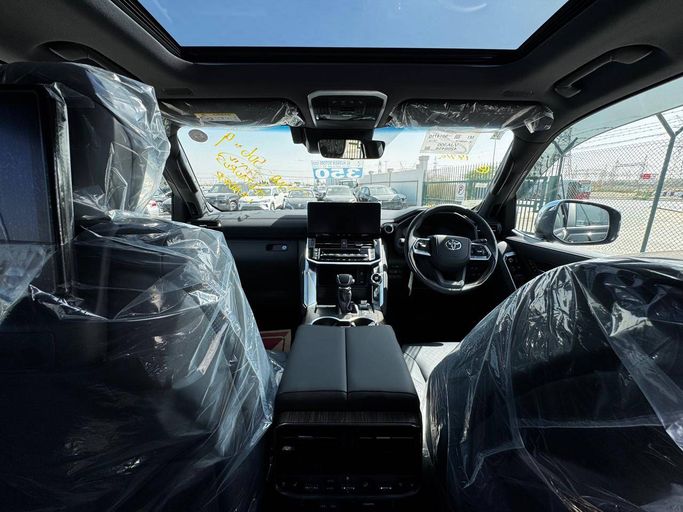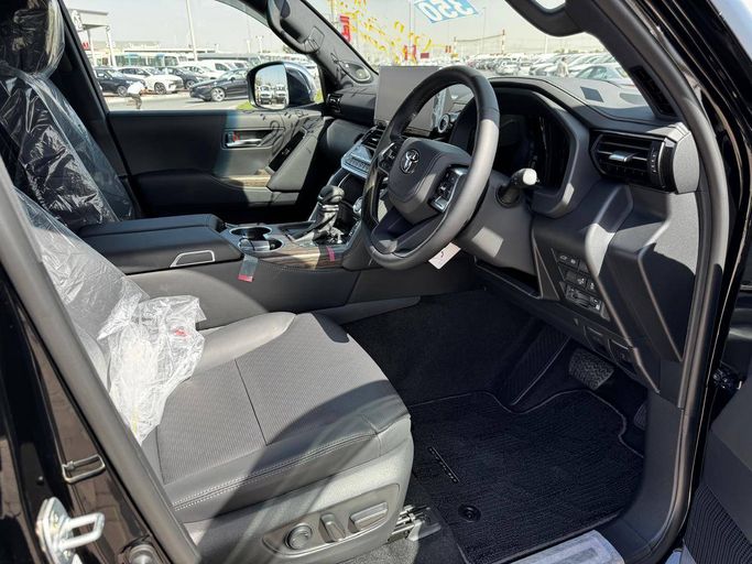 The 2025 Toyota Land Cruiser 300 Series offers a powerful yet refined driving experience in a rugged five-door SUV body, finished in a deep black that emphasizes its commanding presence. Under the hood lies a twin-turbo V6 petrol engine delivering 415 horsepower through a smooth automatic transmission, paired with all-wheel drive to handle diverse terrains with confidence. Inside, you’ll find a balanced blend of comfort and capability, with thoughtfully appointed materials, ample space for passengers and cargo, and advanced technology to support both daily use and adventure