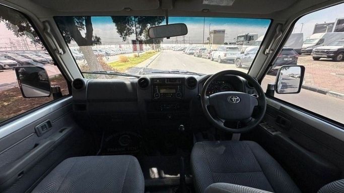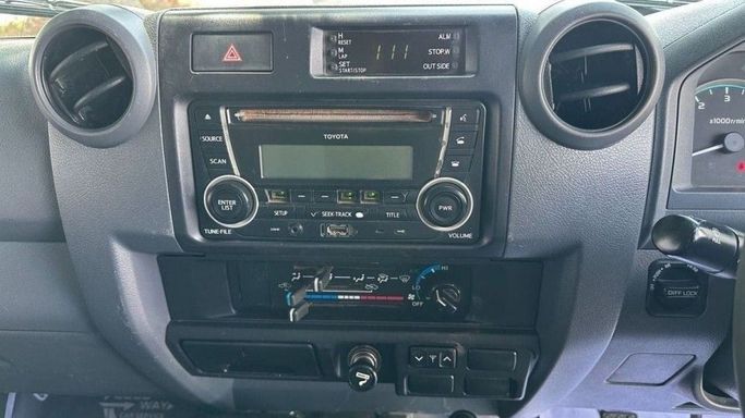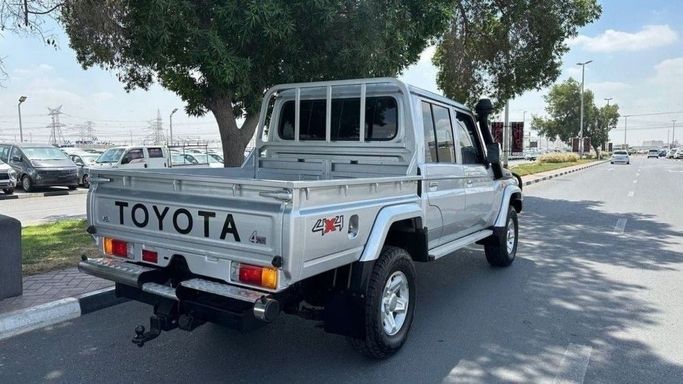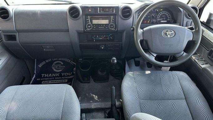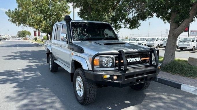 This is a 2016 Toyota Land Cruiser 70 Series Facelift 1, a pickup truck with a double cabin. The car has had one owner and has traveled only 56,000 km, which for this generation indicates safety and careful use. The 4.5-liter diesel engine develops about 202 hp and is combined with a manual transmission and AWD all-wheel drive, ensuring confident driving on the highway and good off-road performance. The body color is white, and the exterior is maintained in neat condition. This combination of durability, practicality, and ease of maintenance makes this car suitable for both