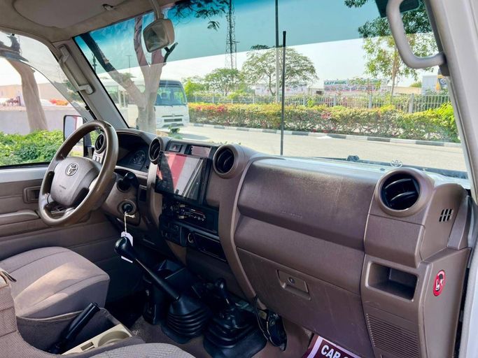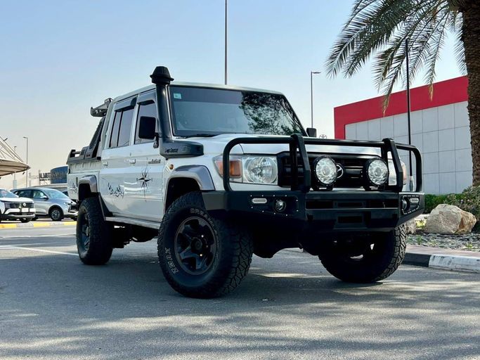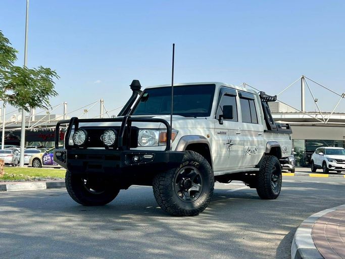 This 2019 Toyota Land Cruiser 70 Series Facelift 1 is a used pickup double cab finished in white, powered by a 4.5-liter diesel engine delivering 202 hp and paired with a manual transmission. It sits on an all-wheel-drive system and offers a straightforward, durable drivetrain suited to both confident on-road performance and capable off-road work. With a single previous owner and 42,363 kilometers, it presents low mileage for a vehicle built for longevity, and the cabin emphasizes practicality with ample space and durable materials designed for everyday use. The design stay