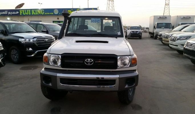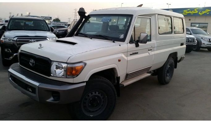 New 2023 Toyota Land Cruiser 70 Series Facelift 1, finished in white, blends rugged purpose with refined daily usability. This 3-door SUV is powered by a 4.5-liter diesel producing 202 hp, paired with a manual transmission and all-wheel drive for direct, confident control in varied terrain. The GCC-spec variant ensures regional compliance and reliability for local conditions, while the enduring design preserves the Land Cruiser’s hard-wearing identity. Inside, the layout emphasizes practicality and durability, with straightforward controls and flexible space to accommodate