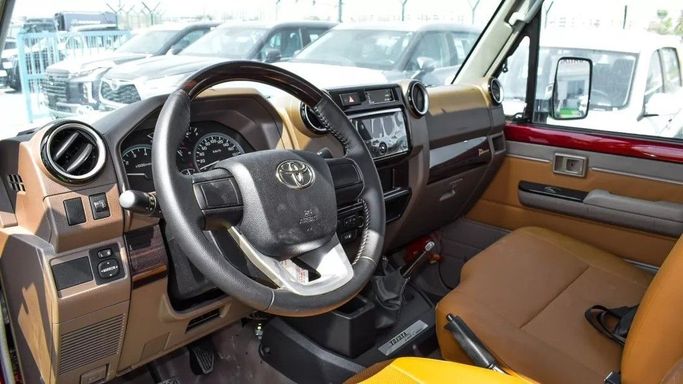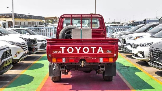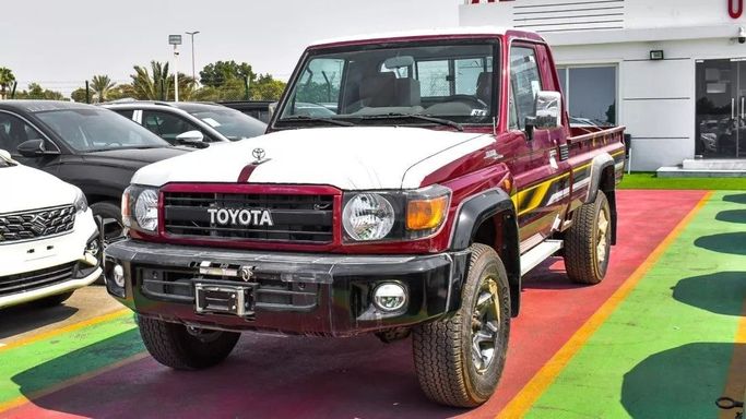 New 2023 Toyota Land Cruiser 70 Series Facelift 1 in red, this single-cab pickup blends rugged capability with straightforward daily practicality. Power comes from a 4.0-liter petrol engine producing 228 horsepower, paired with a manual transmission for direct, hands-on control, while all-wheel drive provides traction across diverse terrains. The facelift touch updates the exterior and cabin without compromising the core toughness the 70 Series is known for, making it a reliable workhorse with a timeless silhouette. The single-cab layout emphasizes payload space and easy ma
