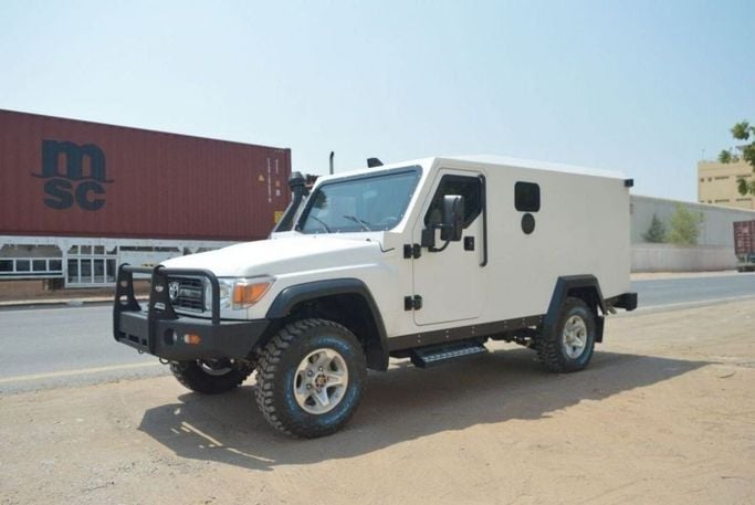 New Toyota Land Cruiser Hard Top hard top for transfer money for sale from Mohamed Hakim Motors in Dubai. White 2023 model. The car has manual gearbox, 6 cylinder engine, 17″ wheels and beige interior. GCC specs.