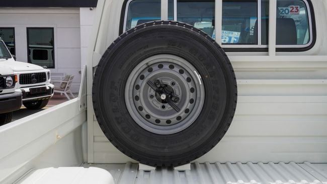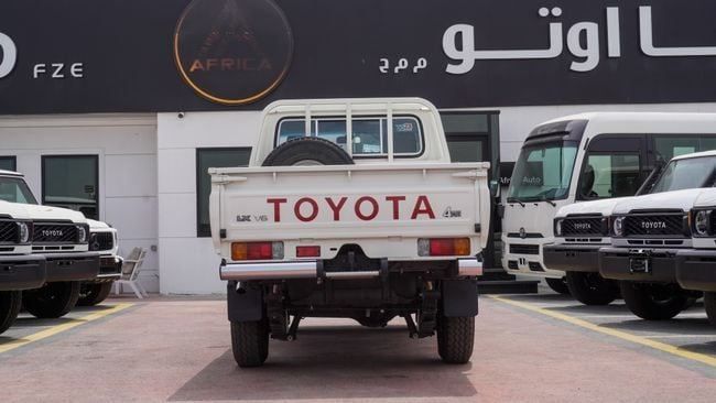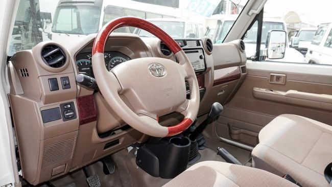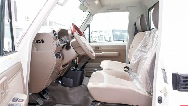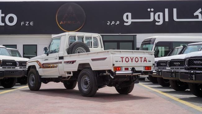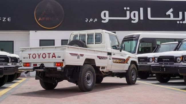 New 2023 Toyota Land Cruiser Pick Up for sale in Dubai. Available from Africa Auto. Manual transmission, 6 cylinder engine, 18″ wheels and beige interior. Never driven, GCC specs.