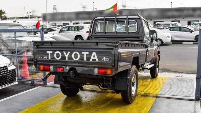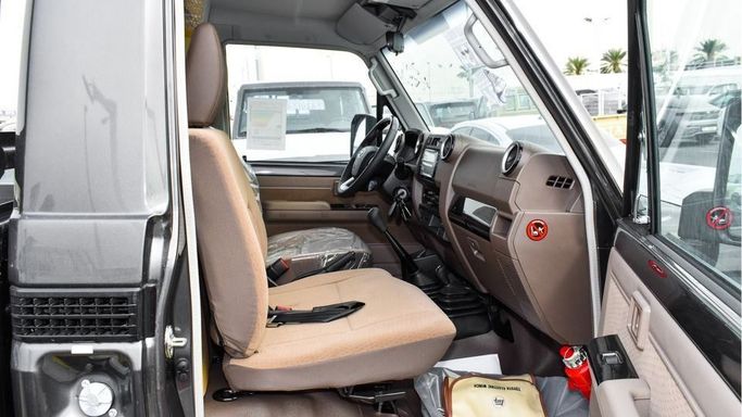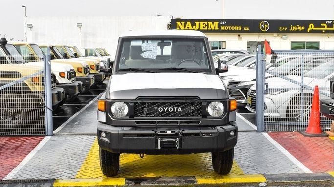Brand new Toyota Land Cruiser Pick Up for sale in Dubai. Grey 2024 model, available at Najem Motors FZE. This car has automatic transmission, 6 cylinder engine, 16″ wheels and brown interior. GCC specs.