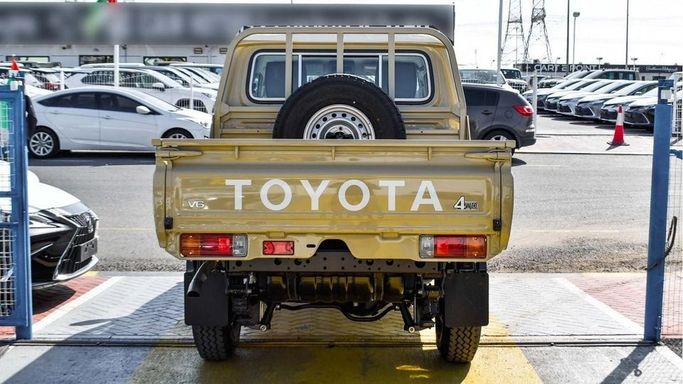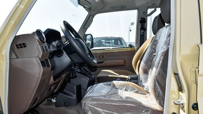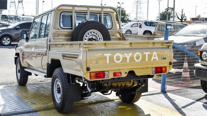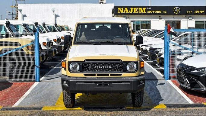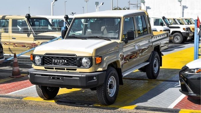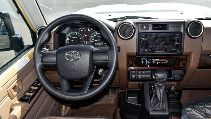 New 2024 Toyota Land Cruiser Pickup for sale in Dubai. Available from Najem Motors FZE. Automatic transmission, 6 cylinder engine, 16″ wheels and brown interior. Never driven, GCC specs.