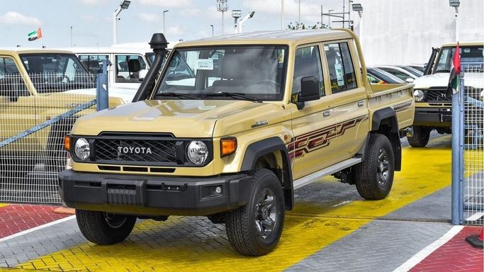 New 2024 Toyota Land Cruiser Pickup 4.0L V6 Petrol Double Cabin Auto transmission for sale in Dubai. Available from Najem Motors FZE. Automatic transmission, 6 cylinder engine, 16″ wheels and beige interior. Never driven, GCC specs.