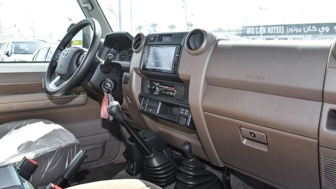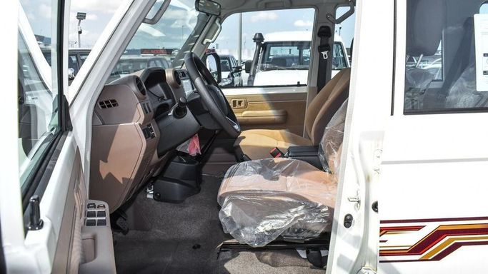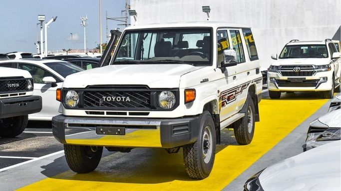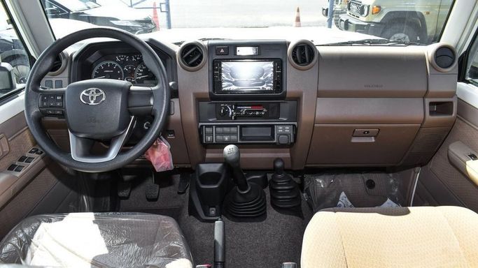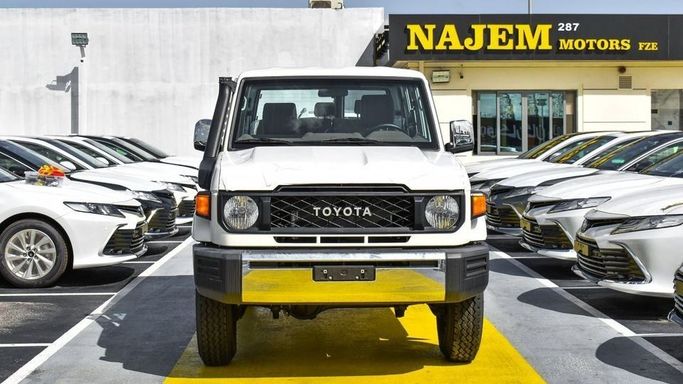 Brand new Toyota Land Cruiser Hard Top 4.5L Diesel V8 for sale in Dubai. White 2024 model, available at Najem Motors FZE. This car has manual transmission, 8 cylinder engine, 16″ wheels and beige interior. GCC specs.
