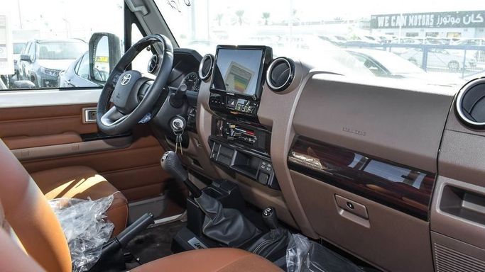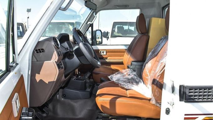 Brand new Toyota Land Cruiser Pickup LX 4.0L V6 Petrol Single Cabin M/T for sale in Dubai. White 2024 model, available at Najem Motors FZE. This car has manual transmission, 6 cylinder engine, 16″ wheels and brown interior. GCC specs.