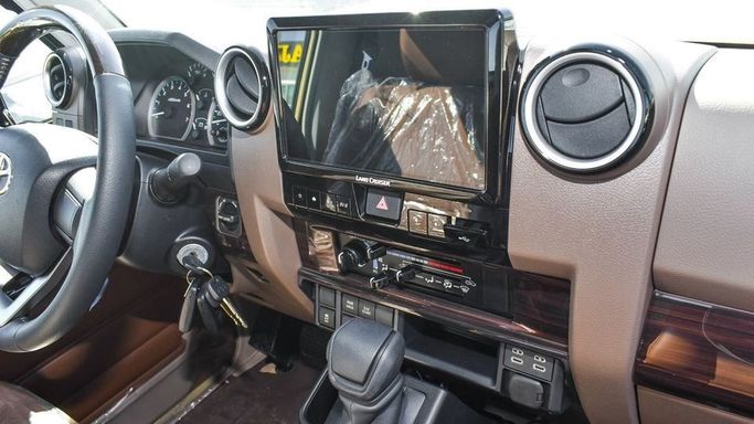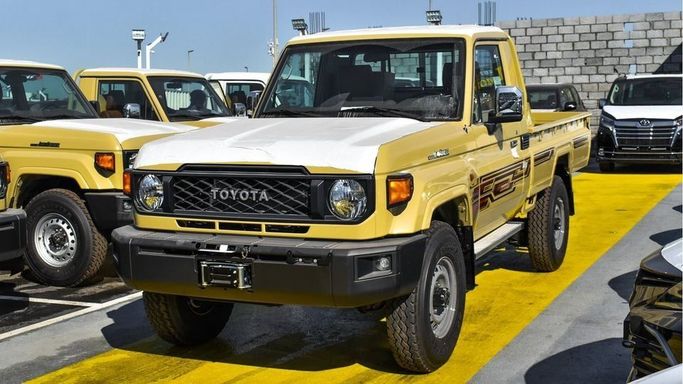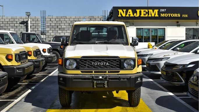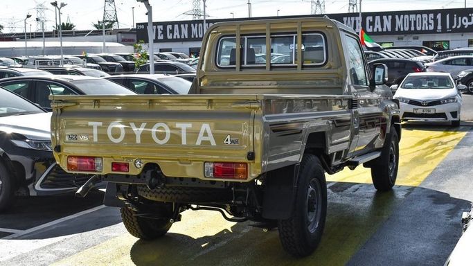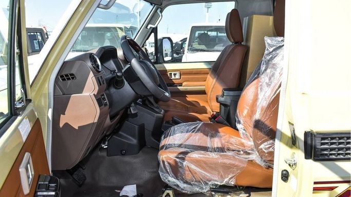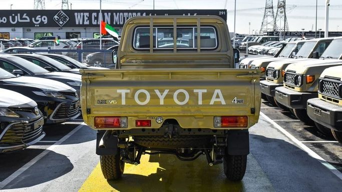 New Toyota Land Cruiser Pickup LX 4.0L V6 Petrol Single Cabin Auto transmission for sale from Najem Motors FZE in Dubai. Beige 2024 model. The car has automatic gearbox, 6 cylinder engine, 16″ wheels and brown interior. GCC specs.